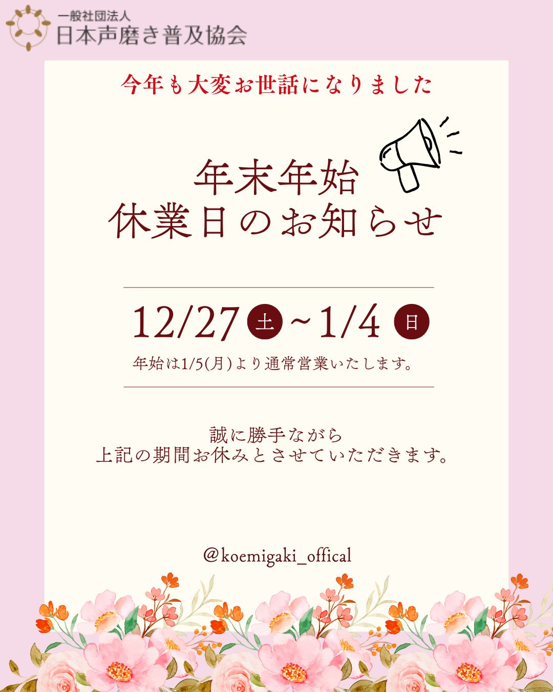 info@koemigaki.com または 048-829-9624